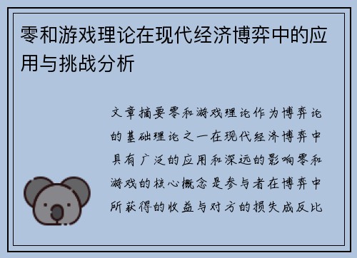零和游戏理论在现代经济博弈中的应用与挑战分析