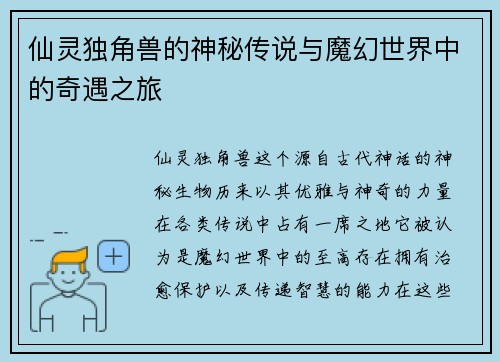 仙灵独角兽的神秘传说与魔幻世界中的奇遇之旅