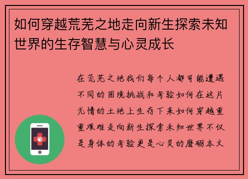 如何穿越荒芜之地走向新生探索未知世界的生存智慧与心灵成长